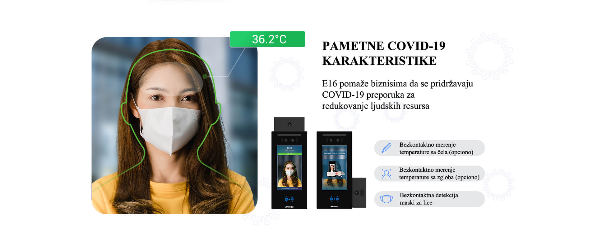 Prepoznavanje lica, mobilni pristup, merenje temperature i otkrivanje da li posetioci nose masku u jednom uređaju.