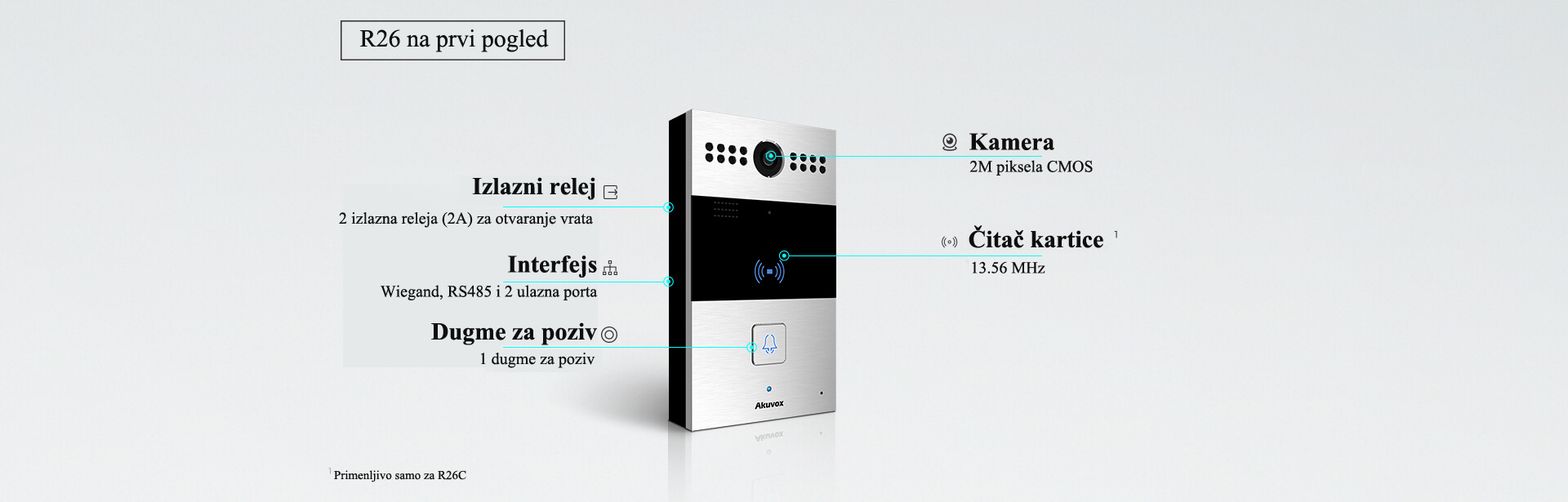 Akuvox R26 je SIP video interfon sa ili bez kontrole pristupa. Obično se koristi u vilama, kućama i kancelarijama.