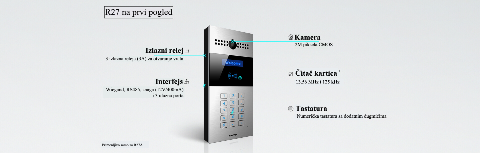 Akuvox R27 je SIP video interfon sa numeričkom tastaturom. Tipično se koristi u stambenim zgradama.