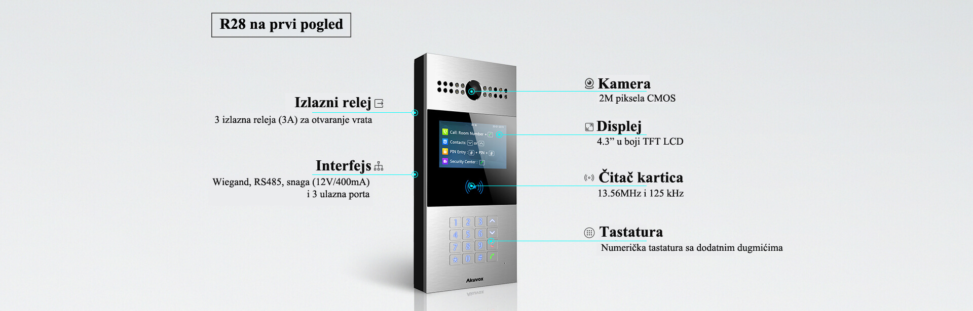 Akuvox R28 je SIP video interfon sa numeričkom tastaturom. Tipično se koristi u stambenim zgradama.